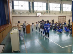節目として、全校児童の前で表彰式を行い、会長と青少年育成部部会長さんが来校していただきました。