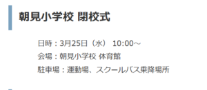 3月25日に、朝見小学校の閉校式を以下の通り行います。